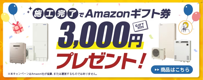 - 施工完了でAmazonギフト券3,000円分貰える!