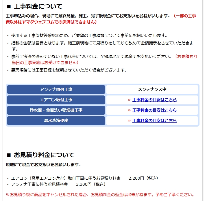 特に気をつけたいのが、ヤマダ電機のアンテナ工事は「見積もり(現地調査)に費用がかかる」という点です。