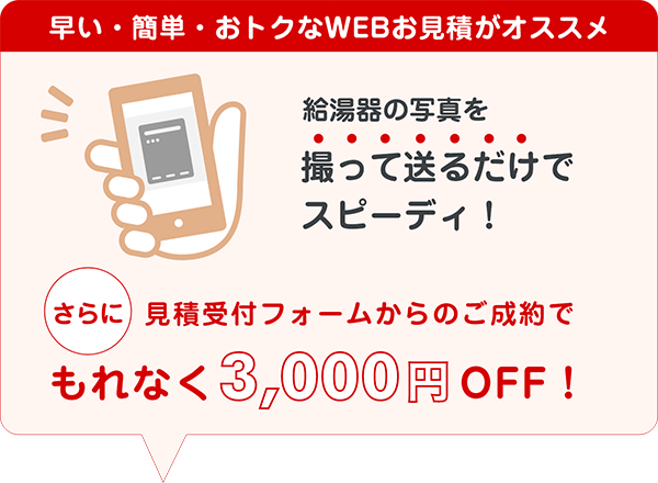 街角給湯相談所は、他社の見積りがあれば最安値で対応してもらえるので、できる限り他社からも見積りを取ることをオススメします。